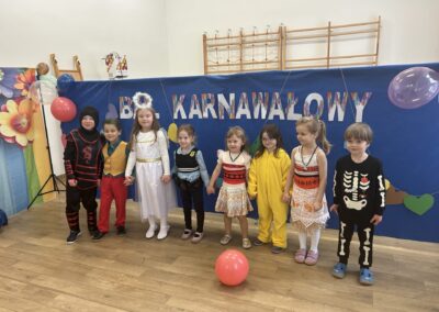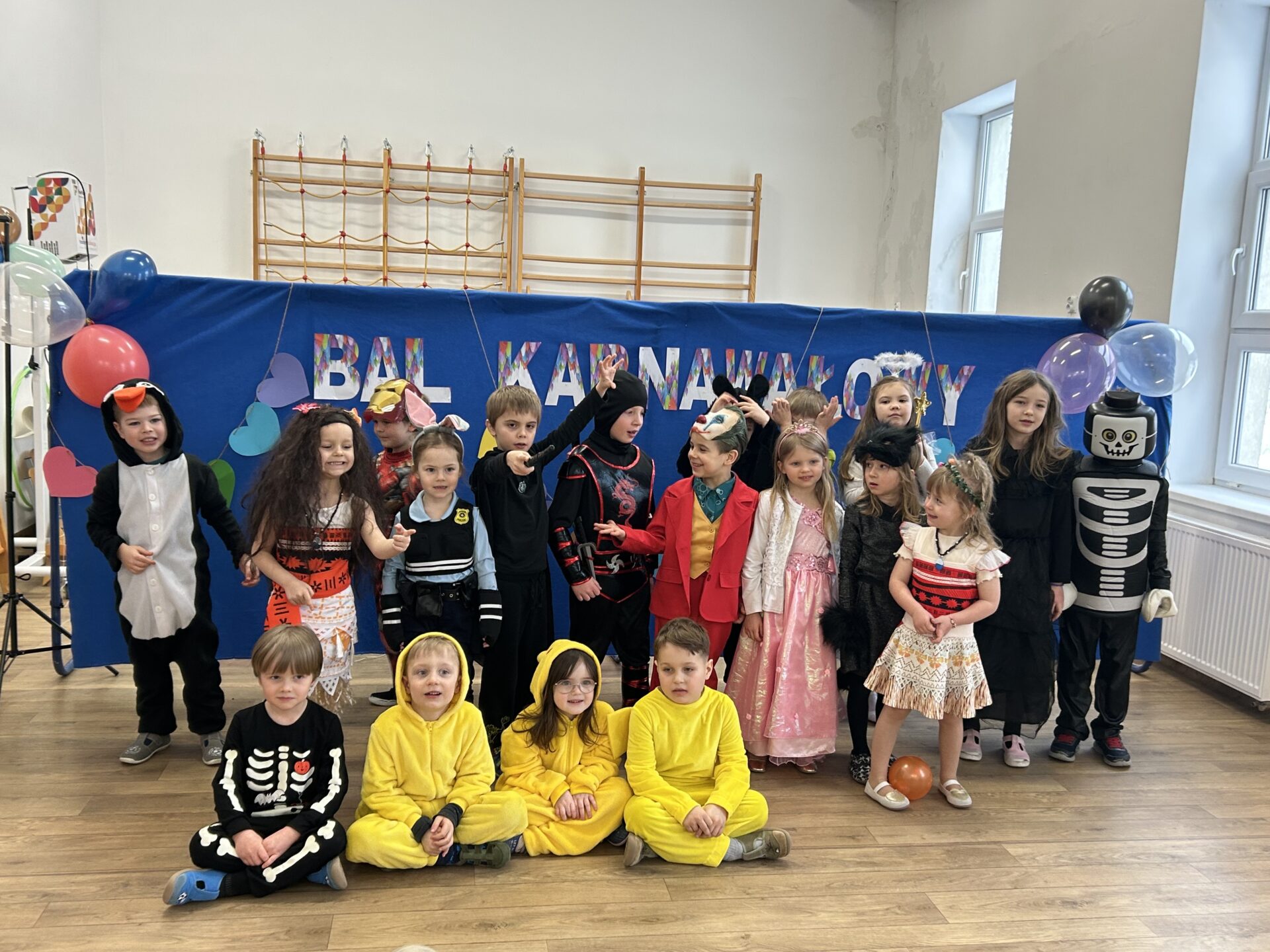To był prawdziwie magiczny dzień! Nasza sala zamieniła się w kolorową, roztańczoną przestrzeń pełną śmiechu, energii i dziecięcej radości. Podczas balu przedszkolaki z ogromnym entuzjazmem angażowały się w różnorodne aktywności ruchowe, muzyczne i integracyjne — nie zabrakło wyzwań zręcznościowych z balonami, emocjonujących prób siły, tanecznych wygibasów przy limbo oraz wspólnych zabaw przy muzyce, które porwały wszystkich do działania.