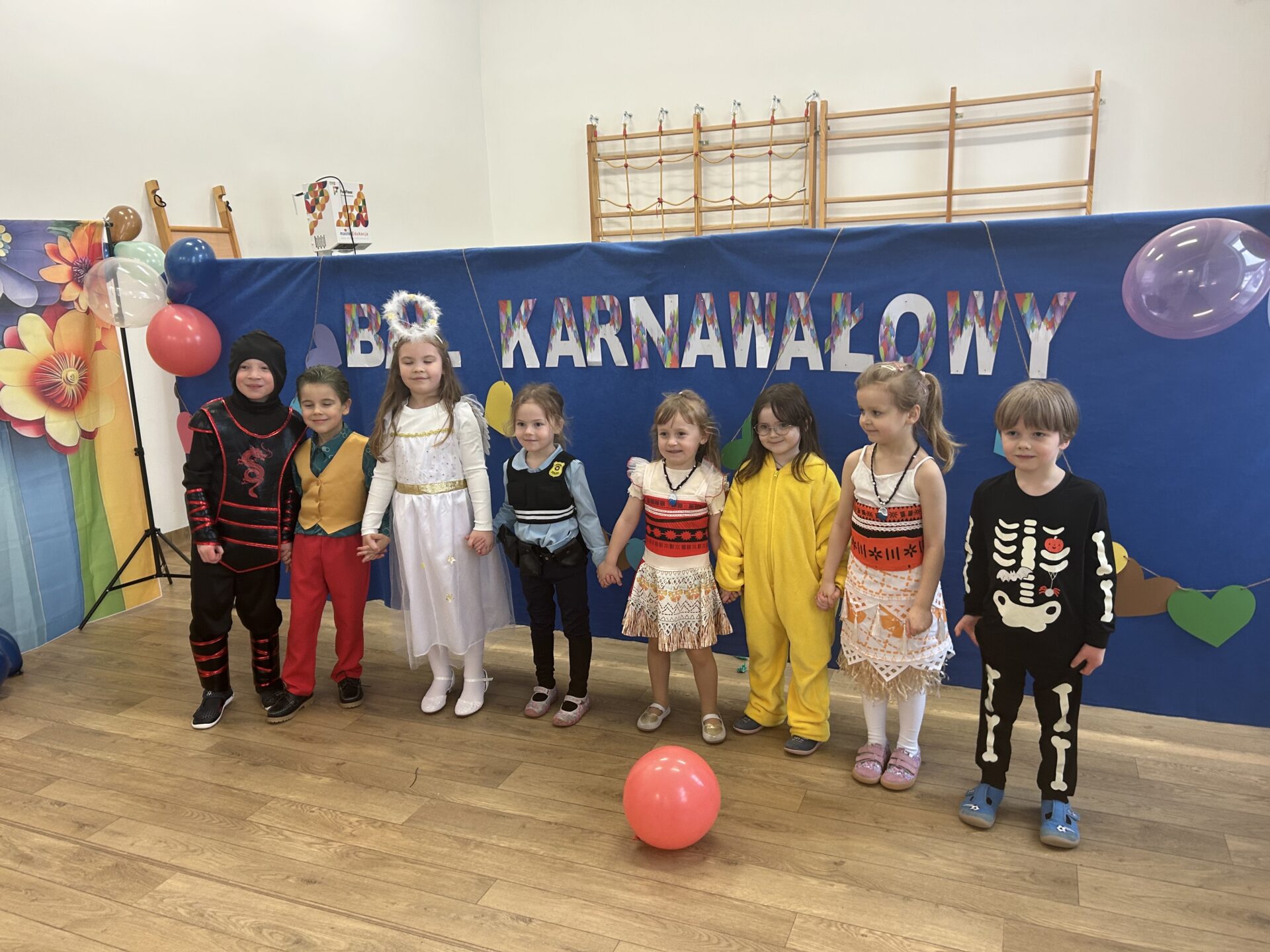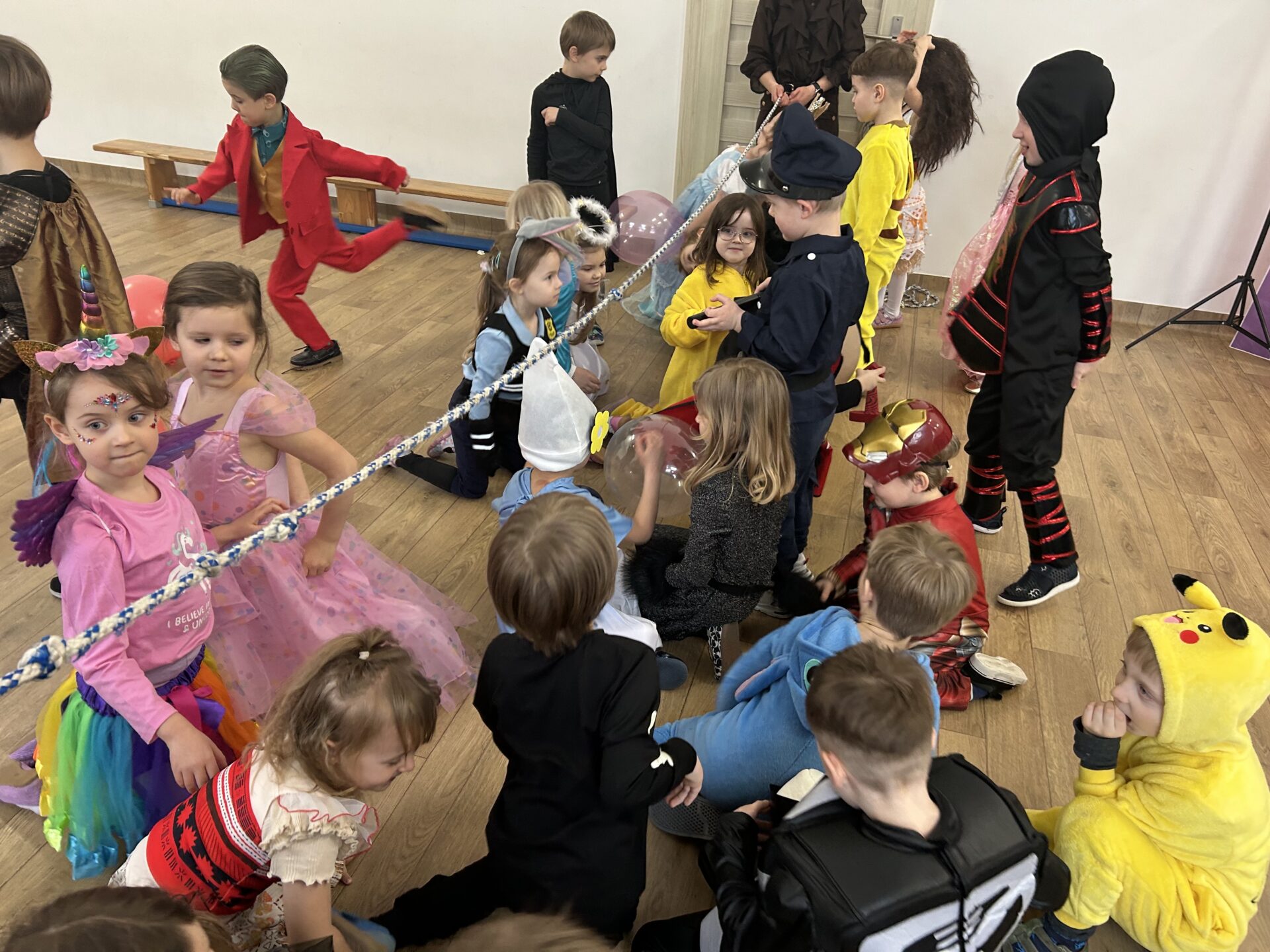 Karnawałowa atmosfera sprzyjała budowaniu relacji, rozwijaniu sprawności ruchowej i przede wszystkim — czerpaniu radości ze wspólnego bycia razem. Uśmiechy dzieci mówiły wszystko — to był dzień pełen pozytywnych emocji i niezapomnianych wrażeń!