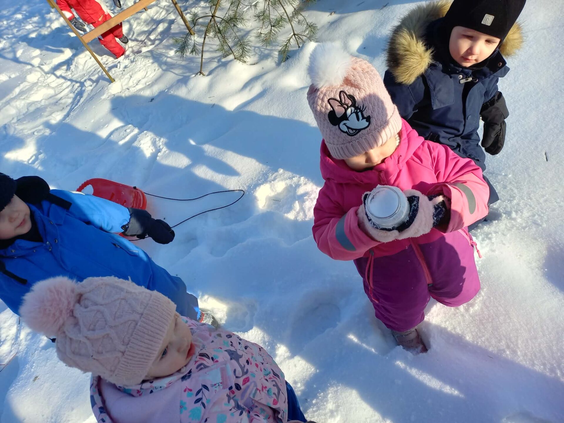 Wczoraj dzieci wzięły udział w ciekawej zabawie badawczej, której celem było sprawdzenie, czy śnieg znajdujący się na placu przedszkolnym jest naprawdę czysty.