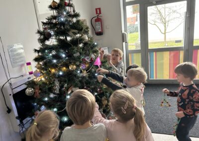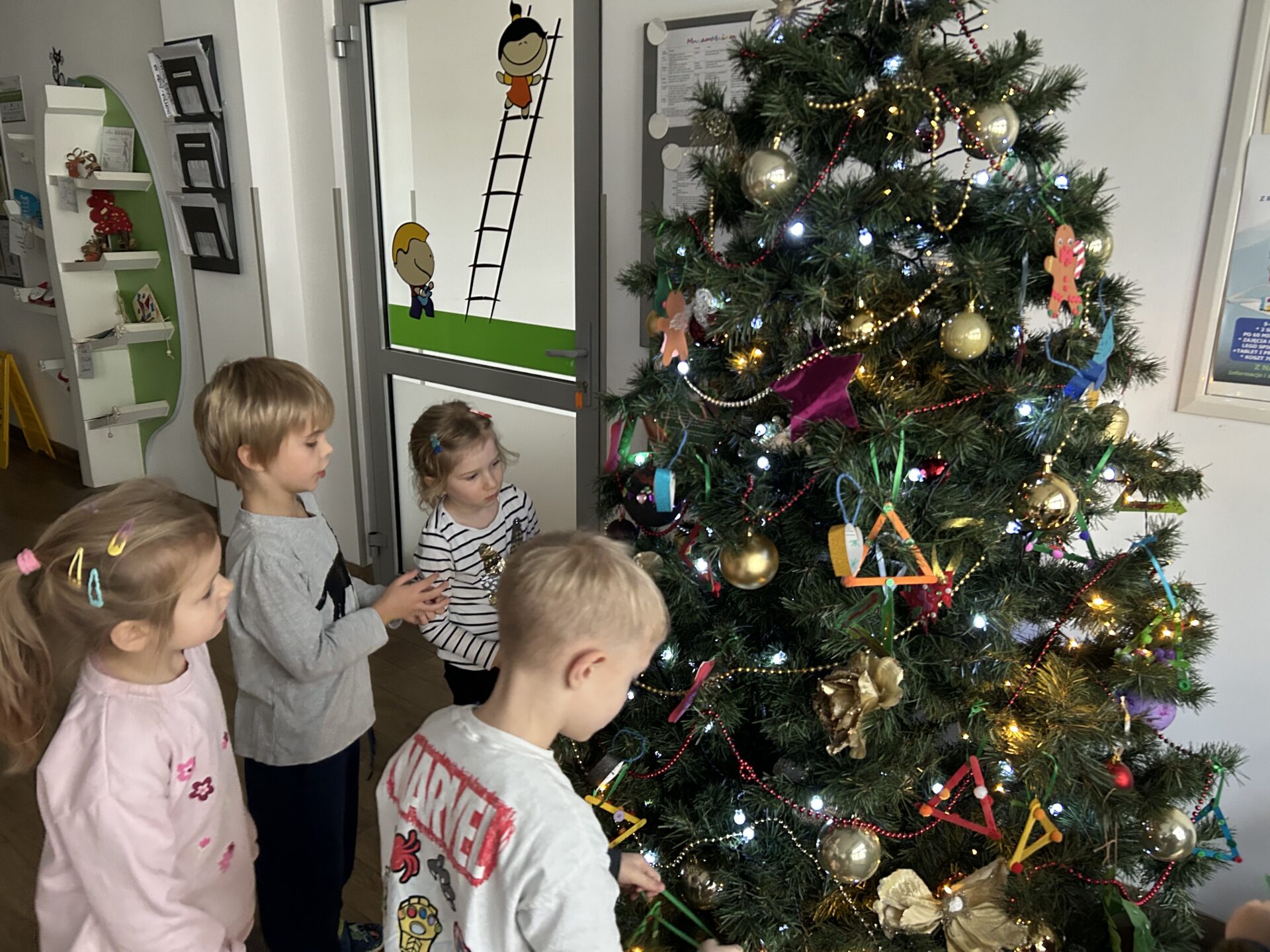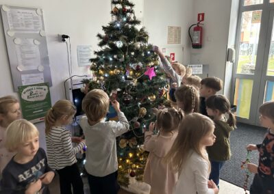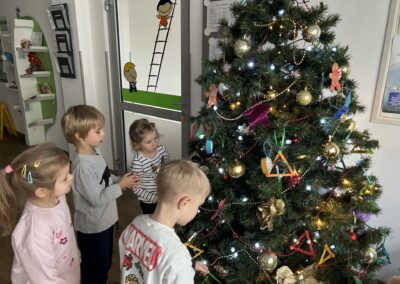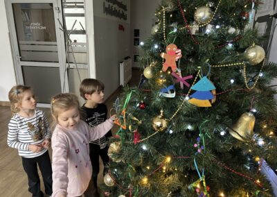 Podczas wspólnego dekorowania w sali unosiła się atmosfera radości, świątecznej energii i dumy z własnych dzieł. Nasza choinka zamieniła się w barwną galerię pełną wyjątkowych prac, które najlepiej pokazują, jak twórcze potrafią być dzieci.