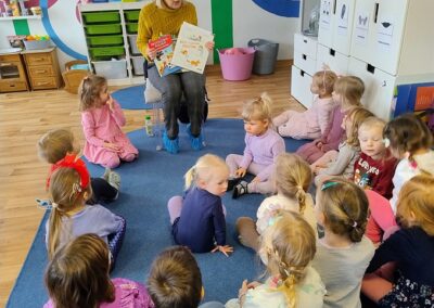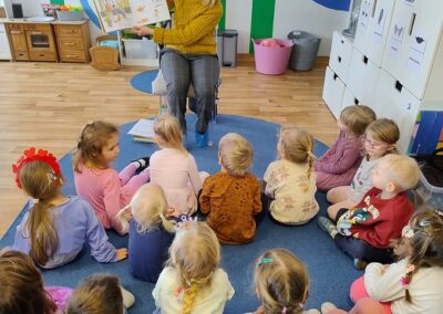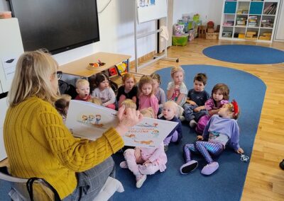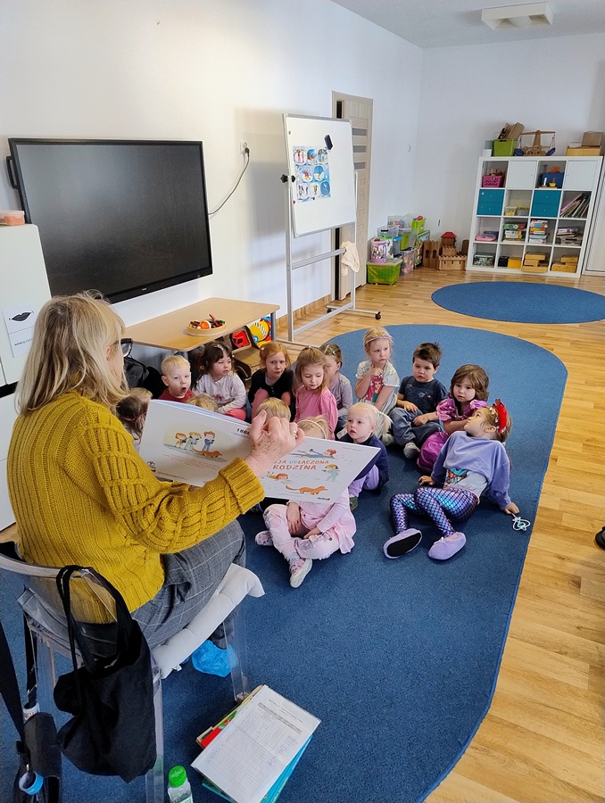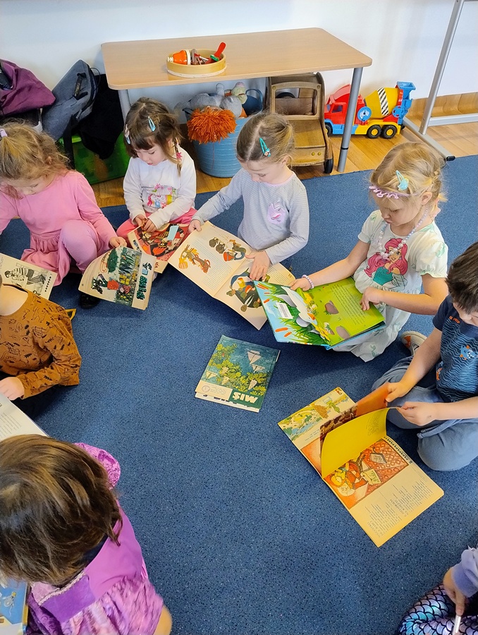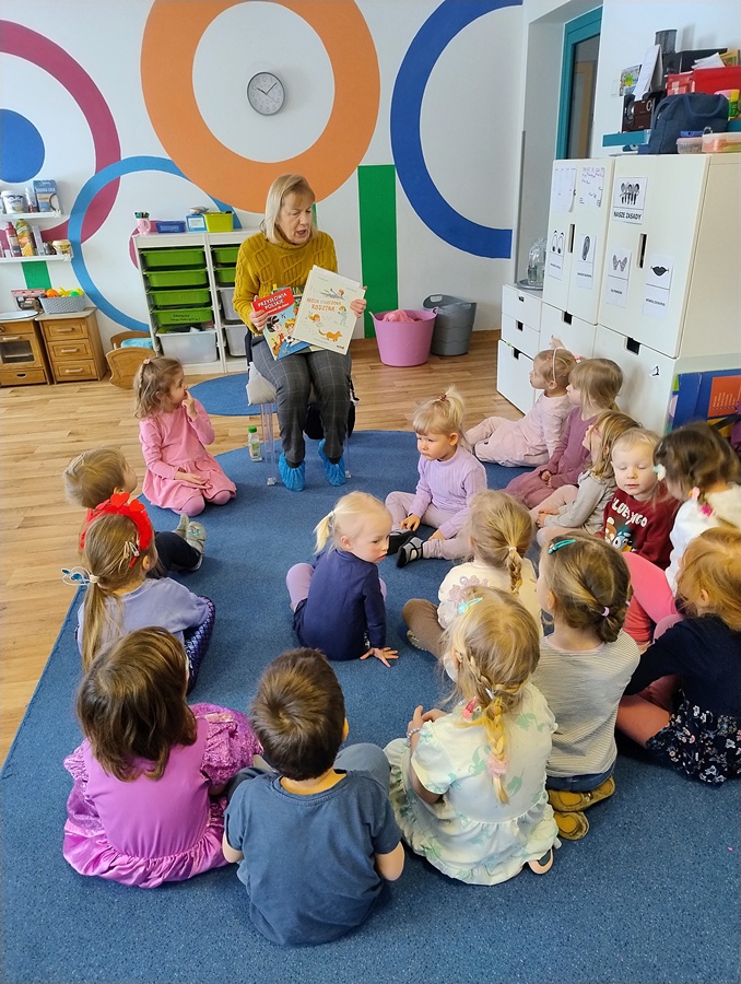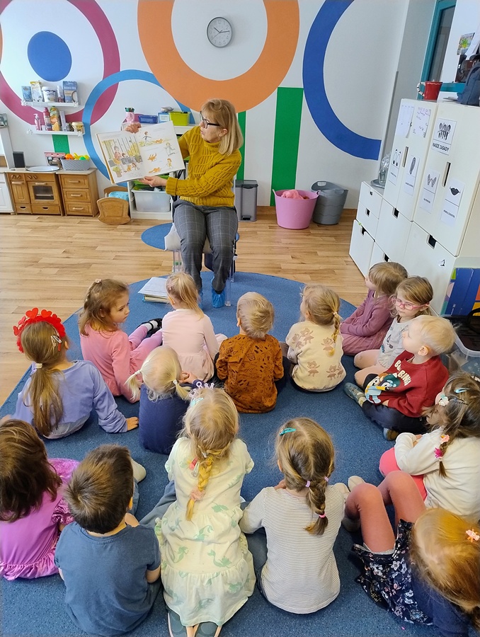W piątek odwiedziła nas Pani Marzena, która jest pracownikiem Biblioteki Pedagogicznej w Olsztynie. Podczas spotkania dzieci dowiedziały się jaka jest różnica między biblioteką, a księgarnią. W ramach akcji głośnego czytania dzieciom, mieliśmy także okazję wysłuchać książki autorstwa A. JavauxA. Masson pt. „Moja odłączona rodzina”. Na koniec dzieci oglądały stare książeczki, które niegdyś mogły służyć ich rodzicom, ale nadal były zachowane w bardzo dobrym stanie. To miało pokazać, iż książki należy traktować z szacunkiem, wtedy mogą posłużyć nam i innym pokoleniom przez wiele lat.