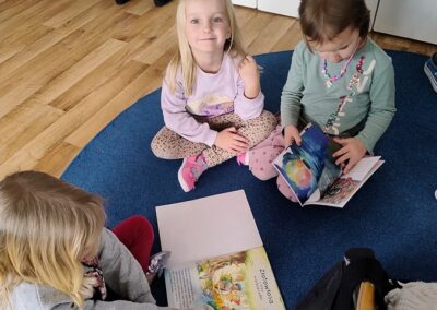 W naszym przedszkolu nie brakuje czasu na wspólne czytanie. Podczas dzisiejszego spotkania, w ramach głośnego czytania dzieciom, Leluki z uwagą słuchały fragmentów książki pt „Budujemy poczucie własnej wartości” autorstwa Ewy Borowskiej.