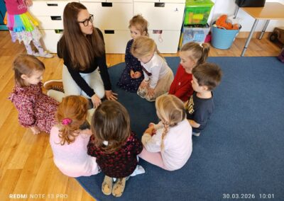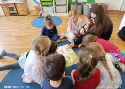 Dodatkowo, w oczekiwaniu na wizytę, wykonaliśmy pracę plastyczną „Zajączki”, rozwijając naszą kreatywność i zdolności manualne. To był wyjątkowy dzień pełen uśmiechu, wyobraźni i wspólnego odkrywania świata książek.