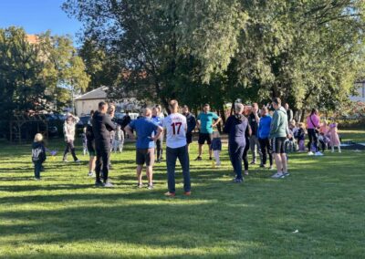 W piątek na naszym przedszkolnym boisku odbył się pierwszy Turniej Piłki Nożnej dla Rodziców! Celem wydarzenia była przede wszystkim wspólna, dobra zabawa oraz odwrócenie ról – tym razem to dzieci kibicowały swoim rodzicom, którzy z wielkim zaangażowaniem i uśmiechem na twarzy rywalizowali na murawie.