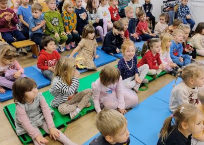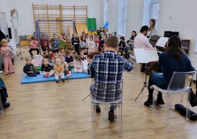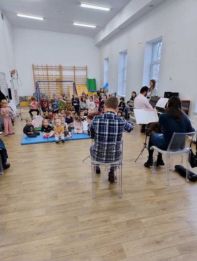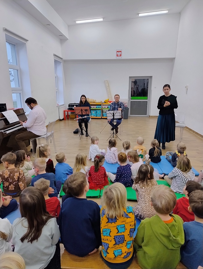 W środę w naszym przedszkolu odbył się koncert muzyczny pt. „ Podróże z muzyką”. Podczas spotkania muzycy z Warmińsko- Mazurskiej Filharmonii im. Feliksa Nowowiejskiego w Olsztynie zabrali dzieci w pełną radości, wrażeń i wspomnień muzyczną podróż. Leluki wysłuchały świątecznej opowieści o Adasiu i jego kocie Kłopocie. Muzycy zaprezentowali nam także różne kolędy i piosenki świąteczne z różnych zakątków świata.