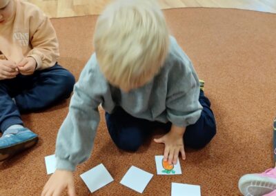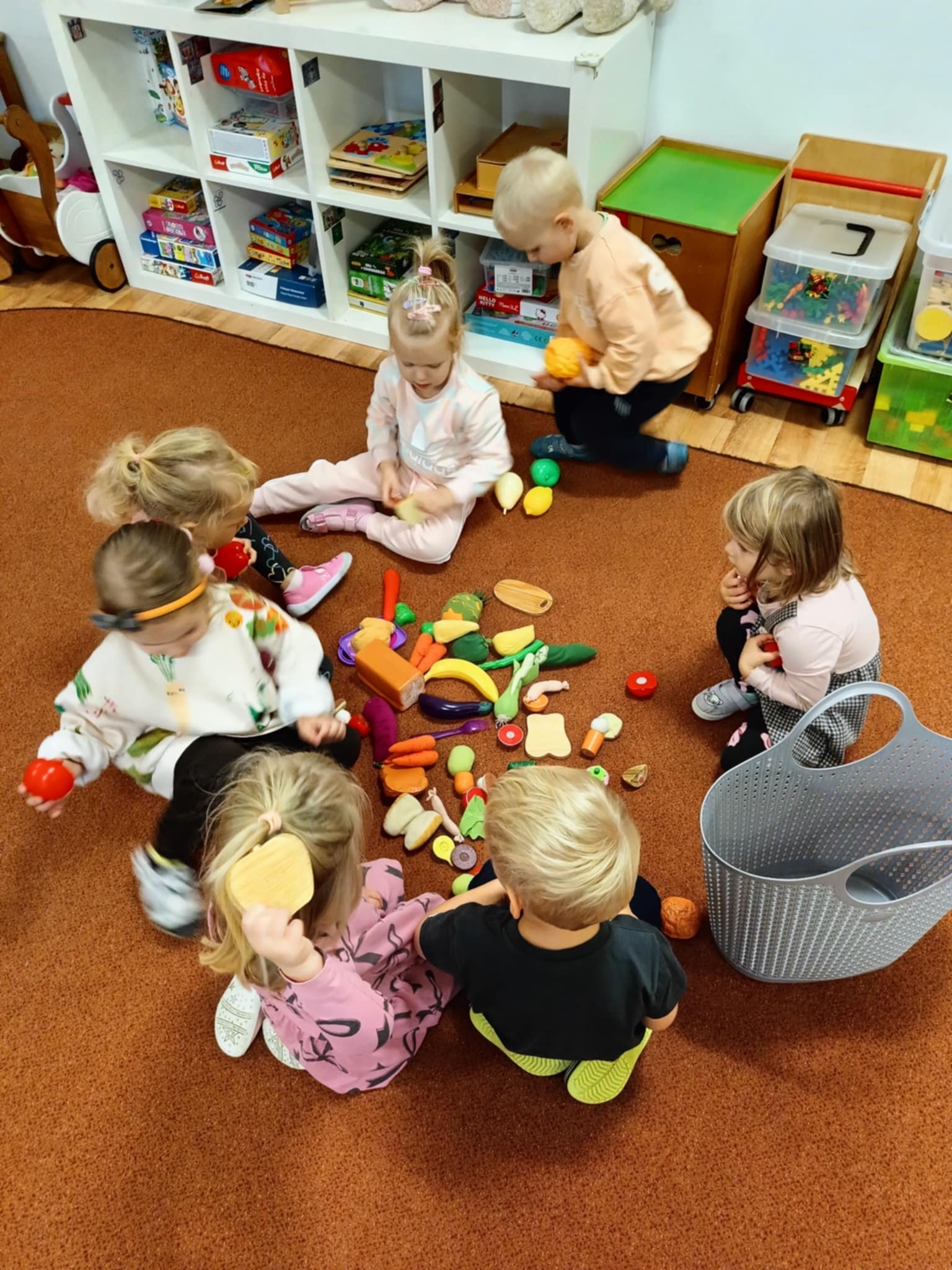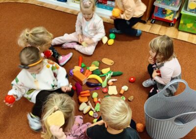 W tym tygodniu leluki żółte na zajęciach poznają podstawowe warzywa, z którymi spotykają się w posiłkach. Motywem przewodnim wczorajszych zajęć była marchewka – zdrowa, kolorowa i bardzo lubiana przez dzieci. Dzieci miały okazję poznawać smaki podczas zabawy badawczej „Marchewkowe smaki”. Nie zabrakło również zabawy na spostrzegawczość, w tym celu nasze leluki sprawdzały co jest warzywem a co nie i segregowały je według kolorów. Taka wspólna zabawa bardzo wpływa na kształtowanie umiejętności współpracy.
