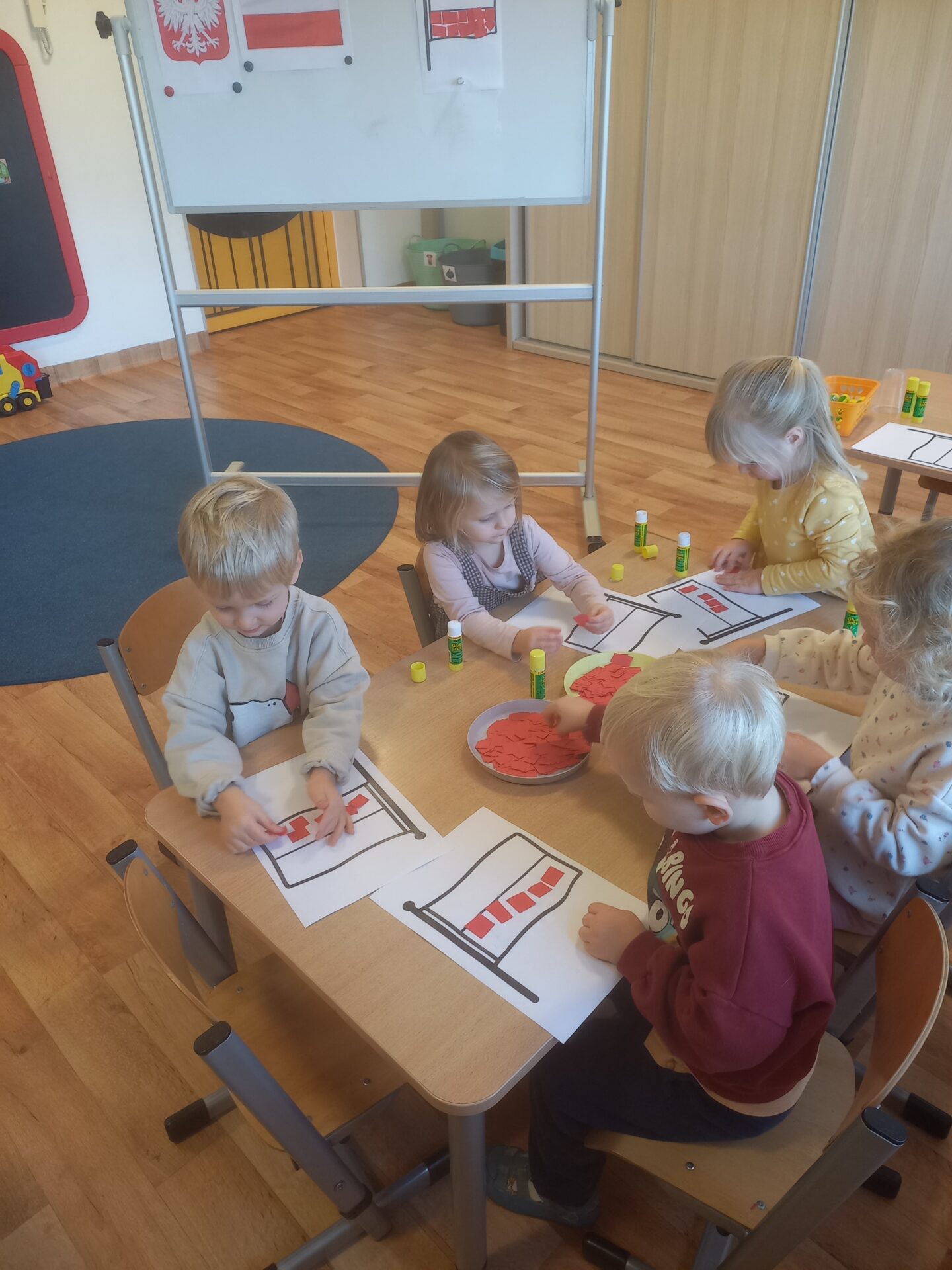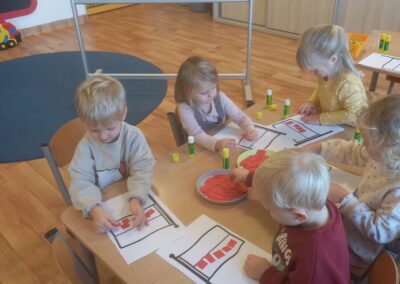 W tym tygodniu w naszej grupie rozmawialiśmy o Polsce, dzieci poznawały historię, symbole narodowe, tradycje i piękno naszego kraju. Przedszkolaki dowiedziały się, co oznaczają kolory naszej flagi, jak wygląda godło Polski i wspólnie odśpiewały „Mazurka Dąbrowskiego”. Podczas zajęć rozmawialiśmy o najpiękniejszych miejscach w Polsce – od morza aż po góry – oglądając zdjęcia i mapy naszego kraju. Nie zabrakło też tworzenia prac plastycznych inspirowanych polską kulturą, a także kodowania na macie. W tym tygodniu również przedszkolaki wybrały się na jesienną wycieczkę nad jezioro, aby wspólnie poszukać oznak nadchodzącej jesieni. Podczas spaceru dzieci obserwowały, jak przyroda się zmienia: drzewa mieniły się kolorami złota, czerwieni i pomarańczy, a pod nogami szeleściły liście.