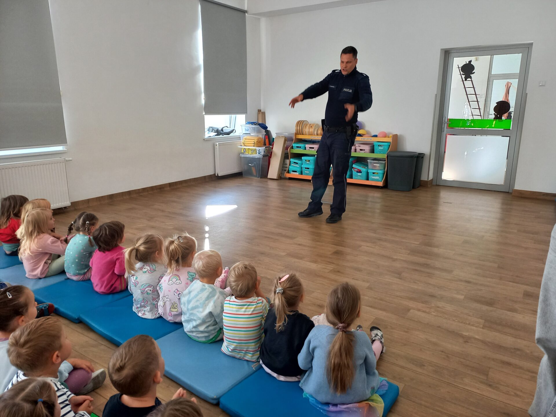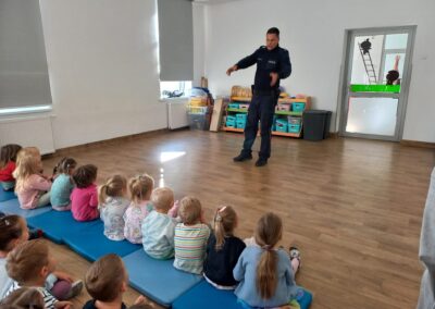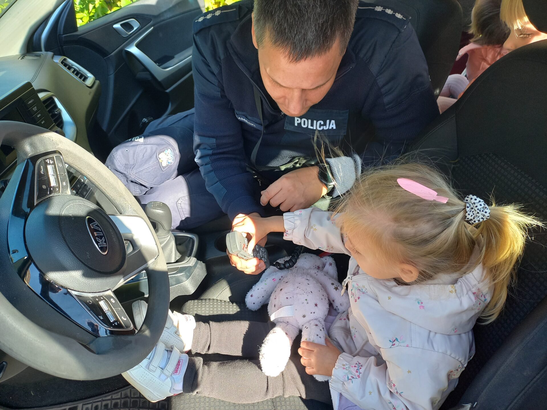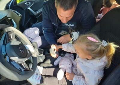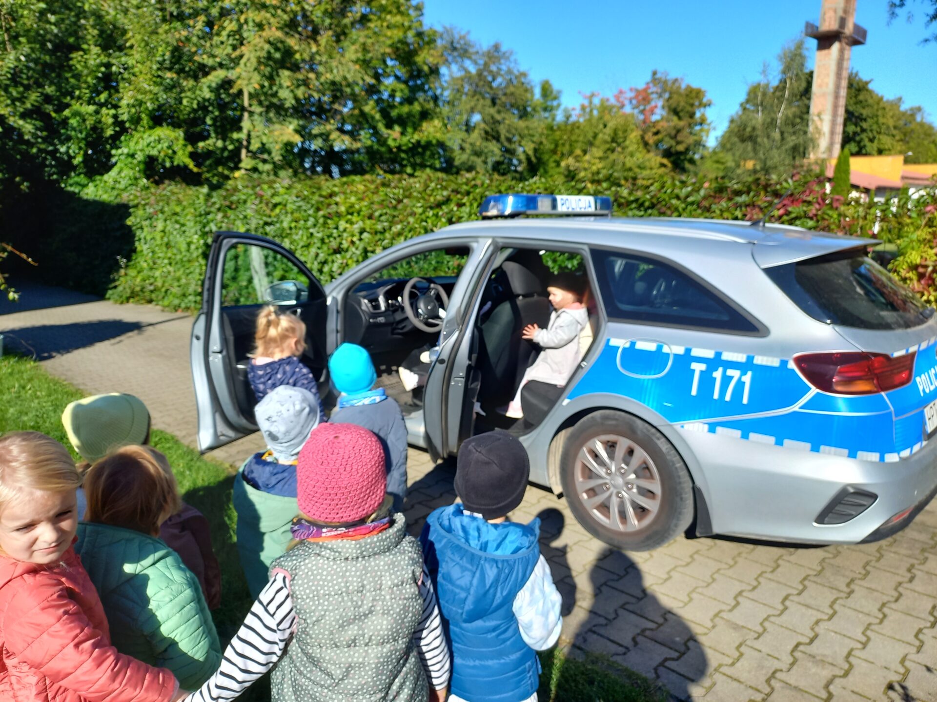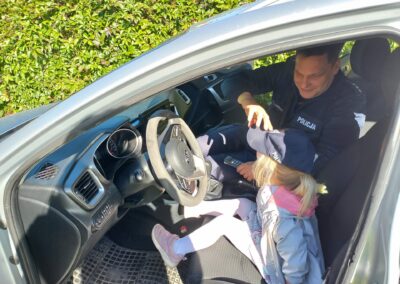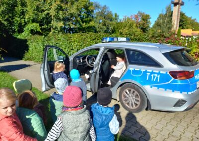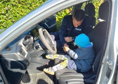 Dziś w naszym przedszkolu gościliśmy wyjątkowego gościa – pana policjanta, który opowiedział dzieciom o zasadach bezpieczeństwa na drodze oraz o tym, jak ważne jest przestrzeganie przepisów. Przedszkolaki dowiedziały się m.in. jak prawidłowo przechodzić przez jezdnię, dlaczego zawsze trzeba zapinać pasy w samochodzie oraz jak bezpiecznie poruszać się pieszo i na rowerze. Po części edukacyjnej na dzieci czekała ogromna atrakcja – mogły z bliska obejrzeć policyjny radiowóz! Mali odkrywcy wchodzili do środka, sprawdzali wyposażenie, a także mieli okazję włączyć sygnały świetlne i dźwiękowe. Radości i uśmiechów było co niemiara!