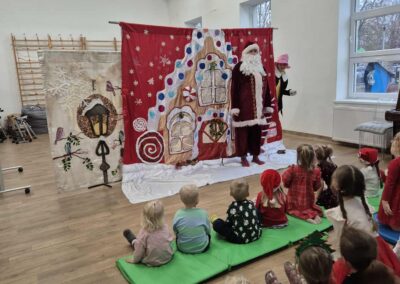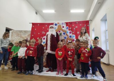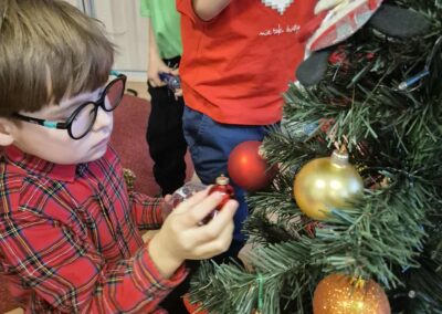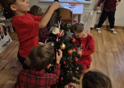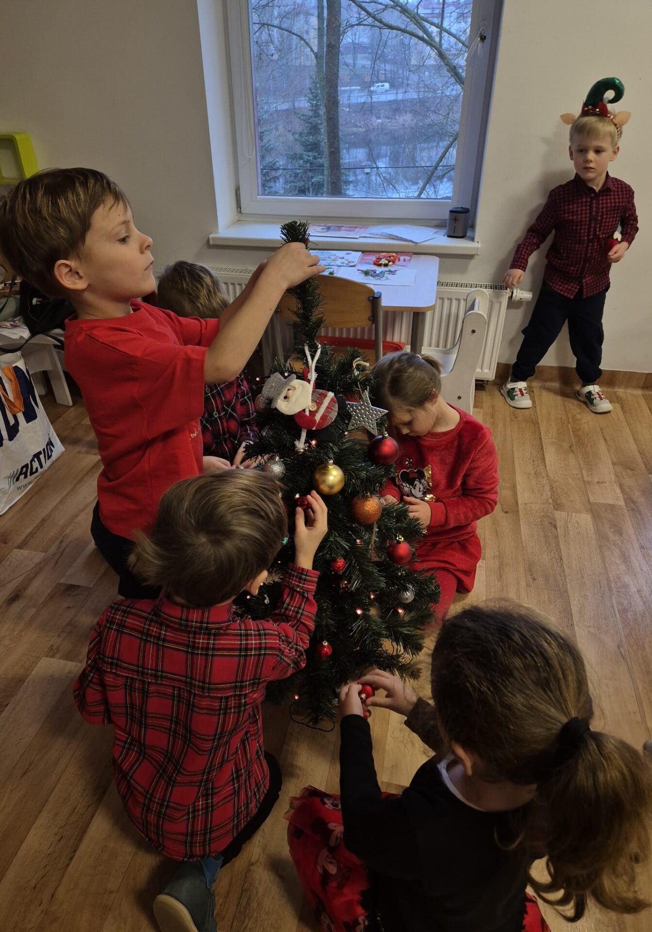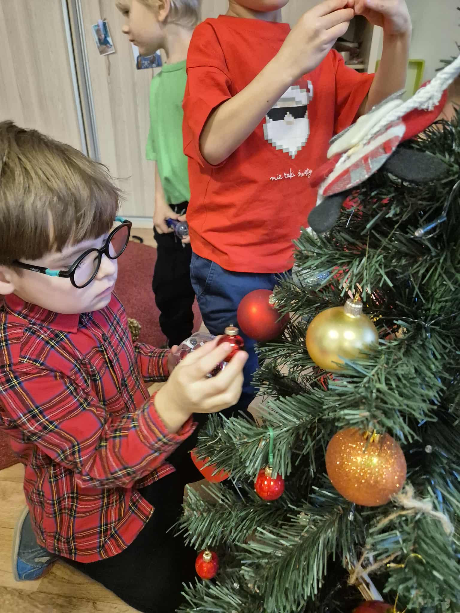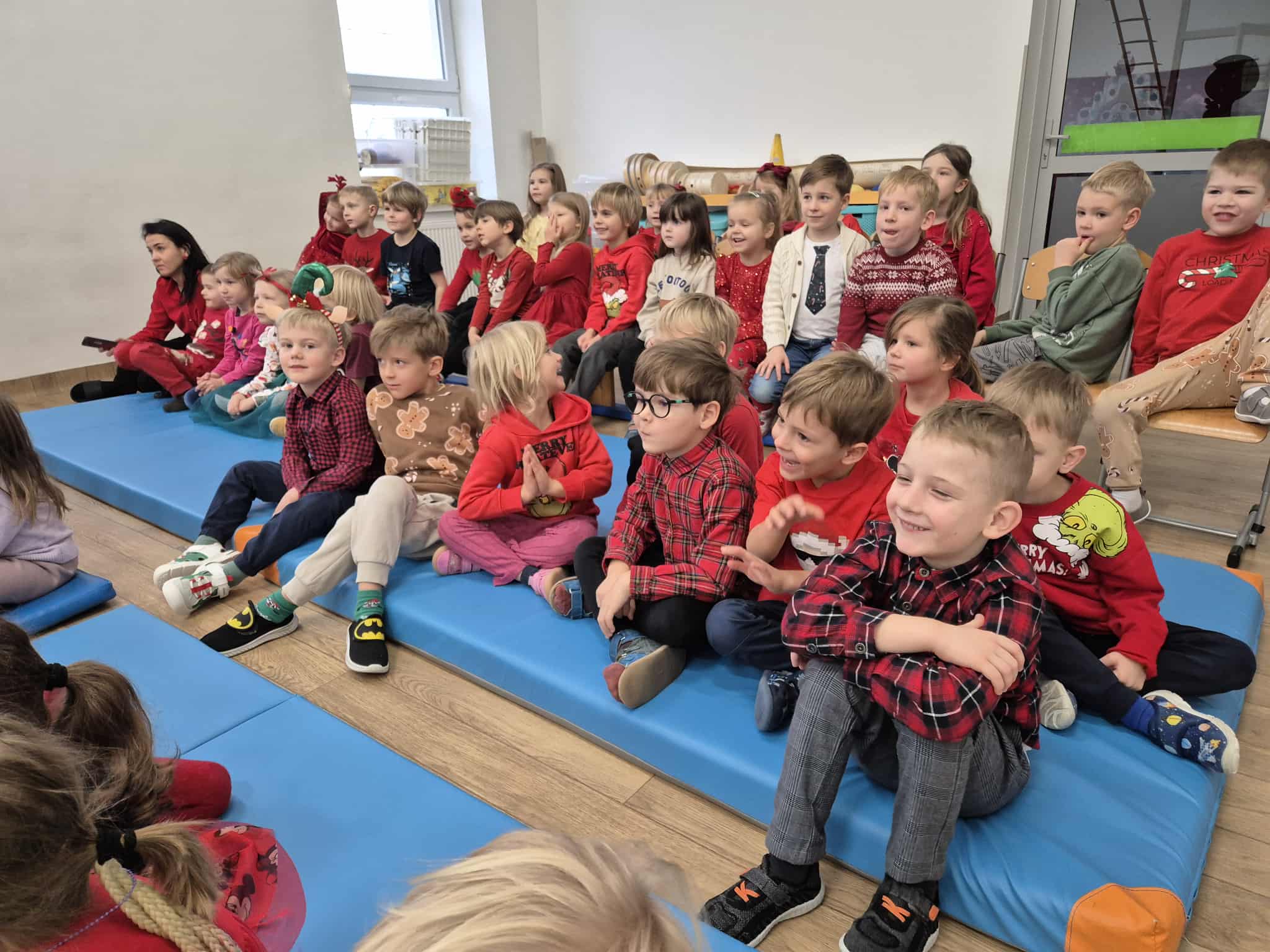 W piątek, w naszym przedszkolu było bardzo czerwono i świątecznie! Obchodziliśmy Mikołajki, a nastrój wprowadził teatrzyk, pt. „Mikołaj w tarapatach”, po którym w naszej sali czekały prezenty od samego Świętego Mikołaja. Dodatkowo nasza grupa z wielkim zaangażowaniem ubierała własną choinkę, wykorzystując zarówno zgromadzone wcześniej ozdoby, jak i te stworzone własnoręcznie. Był to świetny sposób na wspólne budowanie świątecznej atmosfery i integrację w grupie.