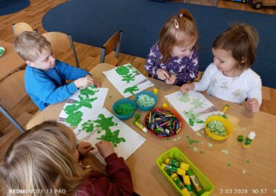 W ramach zajęć „W dawnych czasach” przenieśliśmy się do fascynującego świata dinozaurów oraz prehistorycznego lasu. Dzieci z ogromnym zaangażowaniem poznawały życie sprzed milionów lat, odkrywając ciekawostki o dawnych zwierzętach i ich środowisku.