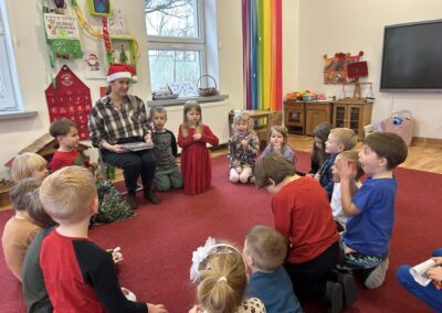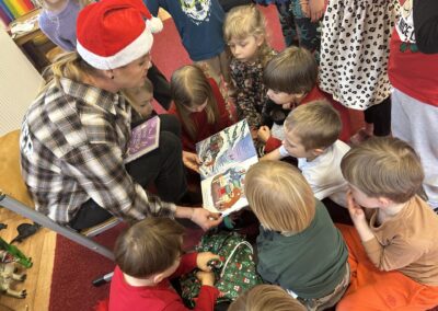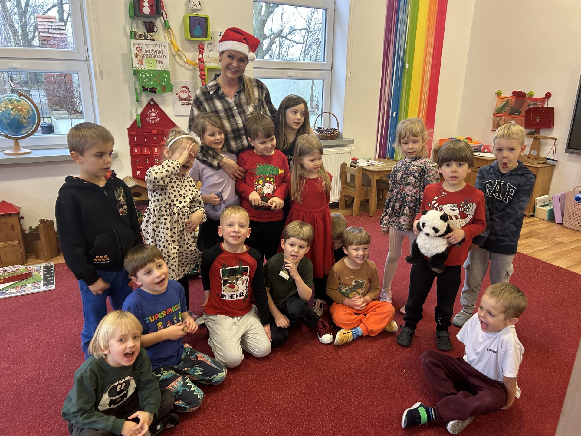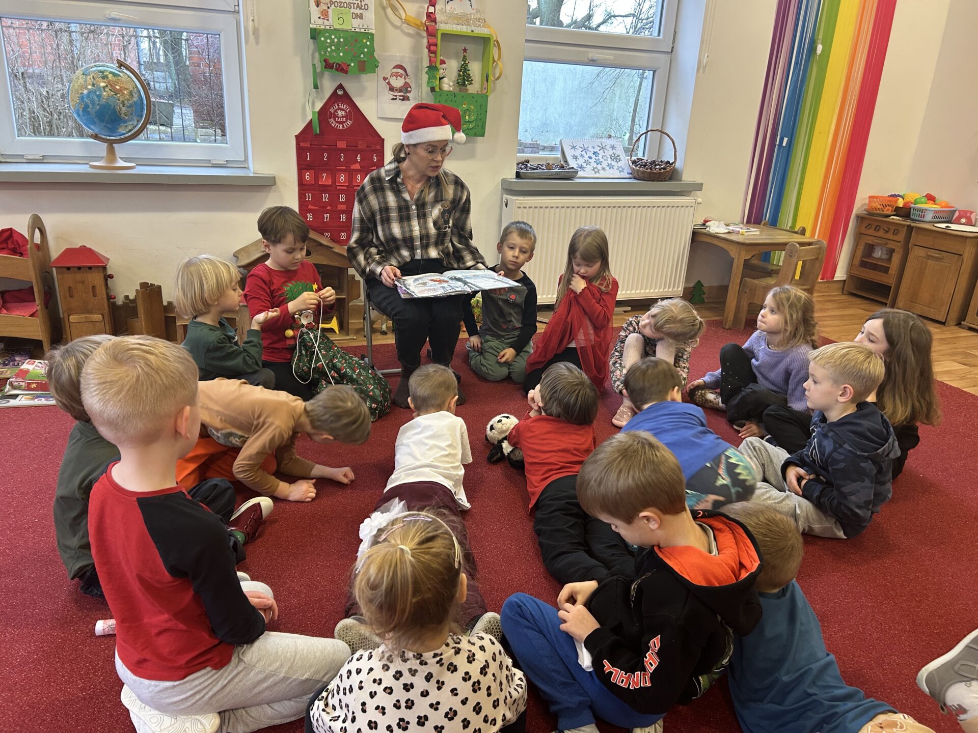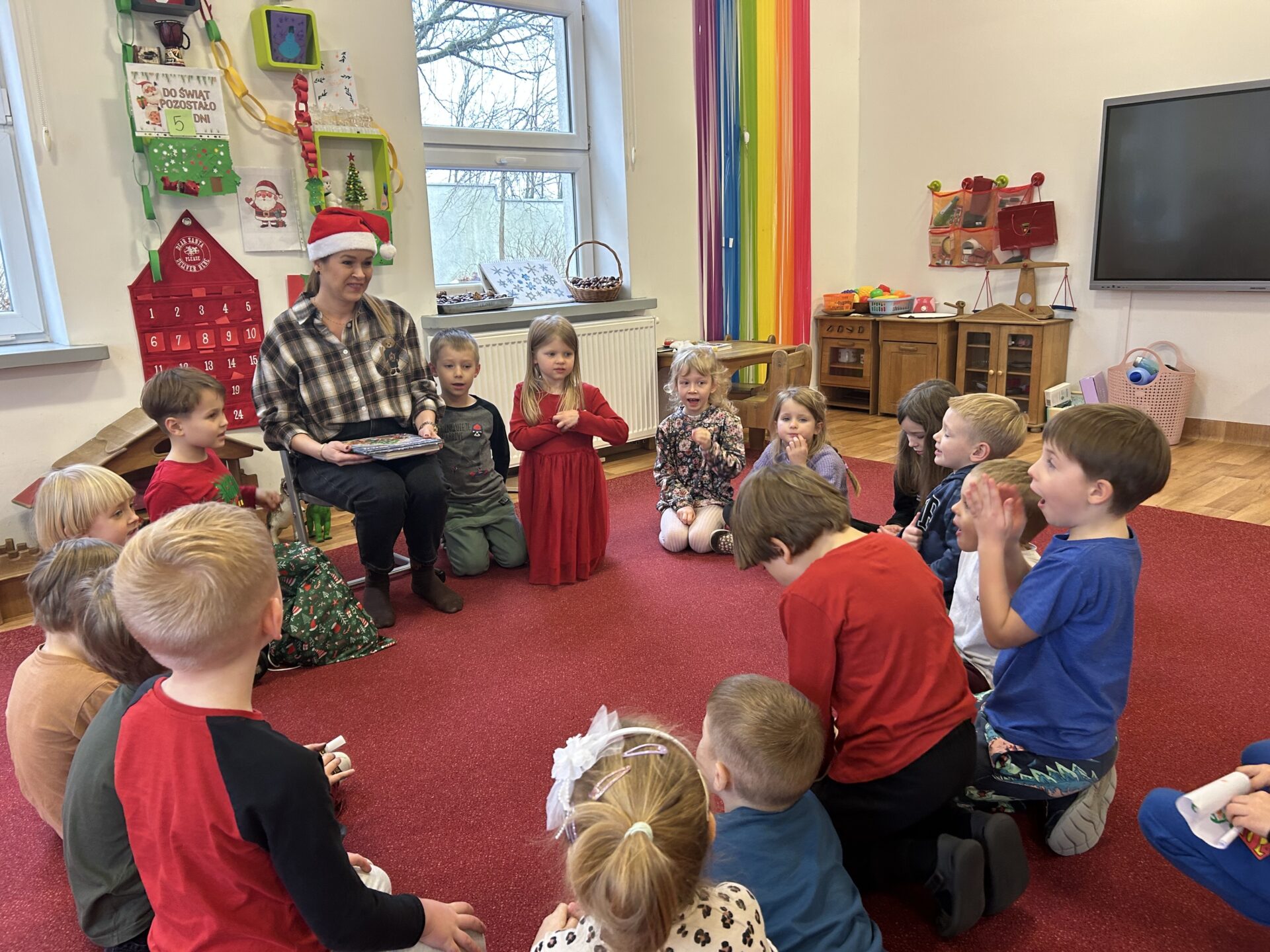 W naszej grupie spotkała nas ostatnio miła niespodzianka. Odwiedziła nas mama Maćka, która przeczytała dzieciom piękne świąteczne opowiadania, wprowadzając wszystkich w ciepły, bożonarodzeniowy nastrój. To jednak nie był koniec atrakcji! W świątecznej czapce i z uśmiechem na twarzy mama Maćka dołączyła do nas także podczas zabaw na świeżym powietrzu, sprawiając dzieciom ogromną radość. Serdecznie dziękujemy za wspólnie spędzony czas, zaangażowanie i tak miłą wizytę, która na długo pozostanie w naszej pamięci.