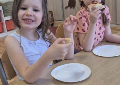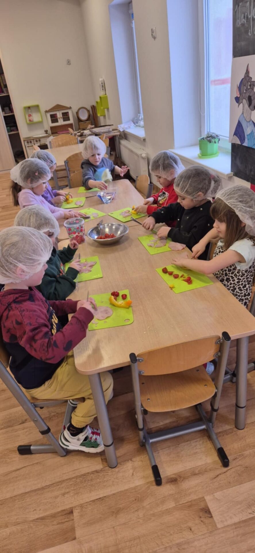 Była to doskonała okazja do rozwijania sprawności manualnej, koordynacji oraz samodzielności. Towarzyszyło nam wiele uśmiechu i dumy z wykonanej pracy. Na zakończenie wszyscy ze smakiem zjedli swoje kulinarne dzieła. Było pysznie!