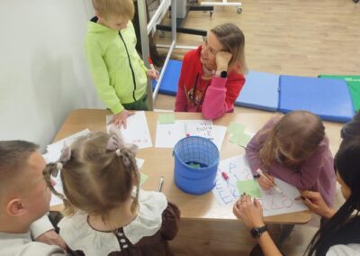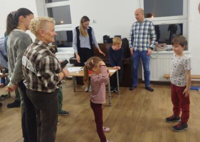 Podczas spotkania dzieci miały okazję współdziałać ze swoimi rodzicami, a my zaprezentowaliśmy przykłady zadań i zabaw, w których działania edukacyjne łączą się z radością i doskonałą zabawą.
