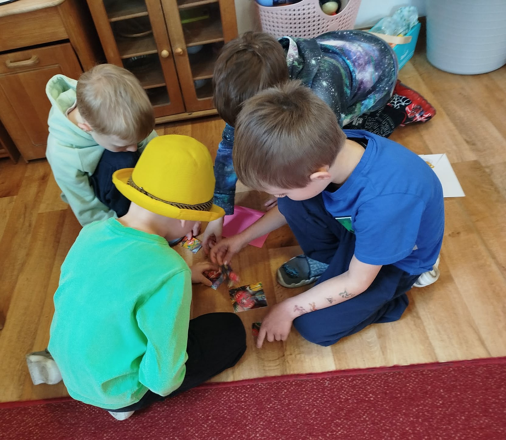 Dziś odbyły się wyjątkowe zabawy związane z poszukiwaniem Wielkanocnego Zajączka. Dzieci miały okazję wziąć udział w wielu ciekawych aktywnościach – układały historyjki obrazkowe, rozwiązywały literkowe rozsypanki oraz wykonywały zadania przygotowane specjalnie przez „Zajączka”.