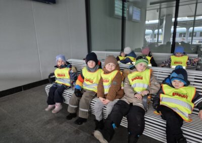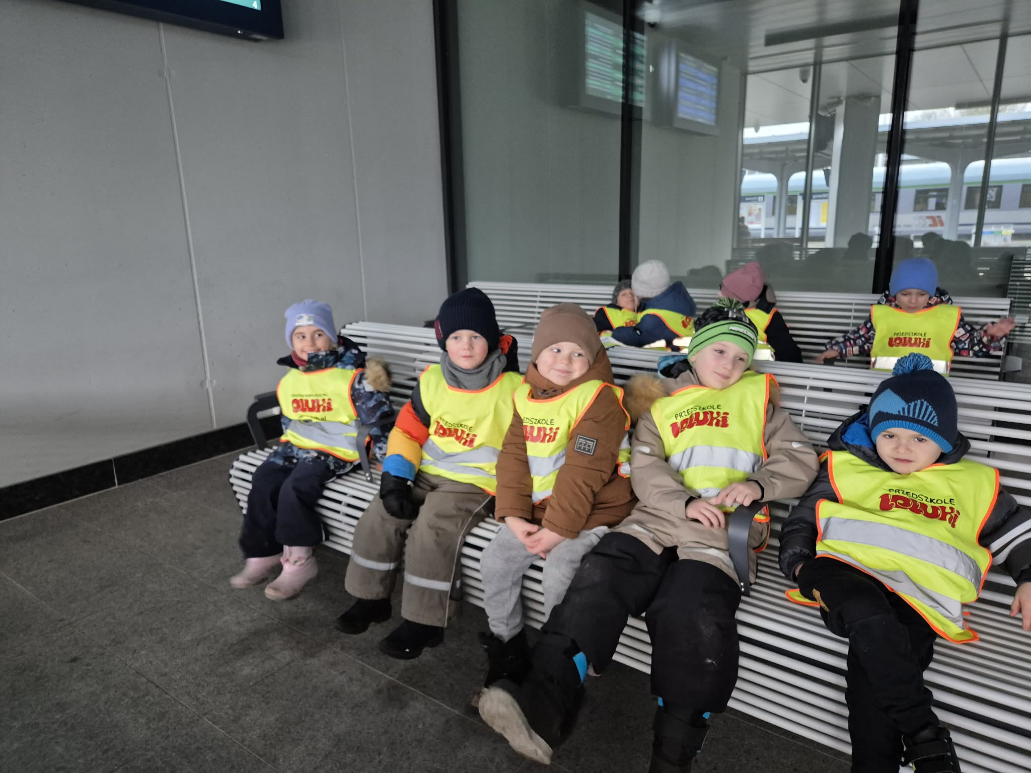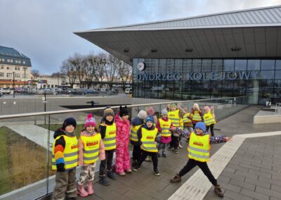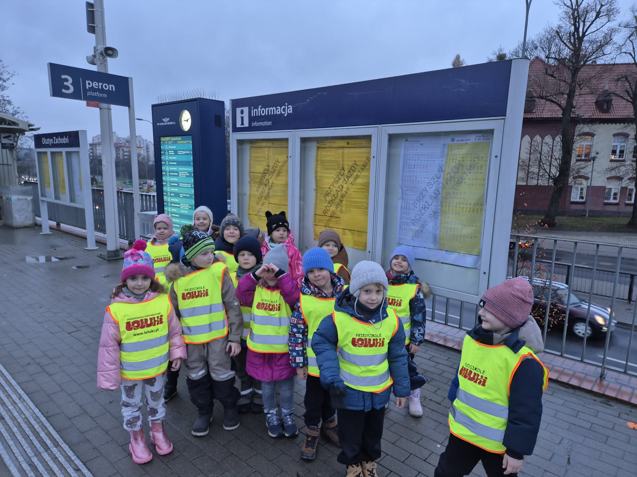 Nasze przedszkolaki wybrały się na wyjątkową wycieczkę – podróż pociągiem na Dworzec Główny w Olsztynie. Już sama jazda PKP była dla dzieci ogromnym przeżyciem! Z zainteresowaniem obserwowały mijane widoki za oknem. Podczas wyprawy przypomnieliśmy sobie zasady bezpieczeństwa, które obowiązują na terenie dworca i w pociągu. Dzieci dowiedziały się m.in., dlaczego należy trzymać się blisko opiekuna, nie podchodzić do krawędzi peronu oraz jak prawidłowo wsiadać do pociągu. Na miejscu mieliśmy okazję poznać przestrzeń dworca – obejrzeliśmy perony, kasy biletowe, tablice informacyjne oraz poczekalnię. Dzieci z zaciekawieniem odkrywały, do czego służą poszczególne elementy dworca i jak pomagają one podróżnym. Wycieczka była nie tylko świetną przygodą, ale także cenną lekcją samodzielności i odpowiedzialności. Dzieci wróciły z niej pełne wrażeń i nowych doświadczeń, które na pewno wykorzystają podczas przyszłych podróży!