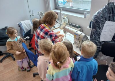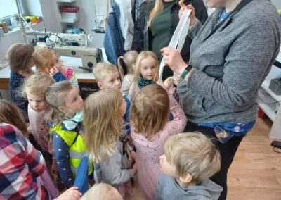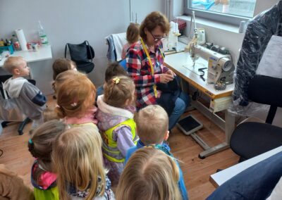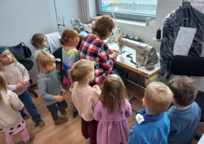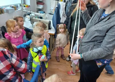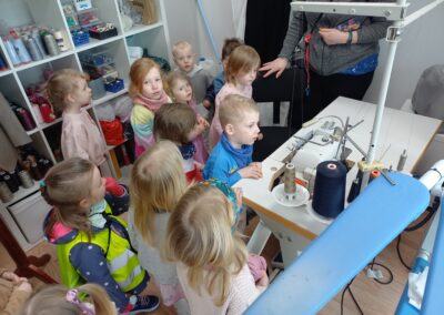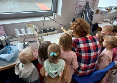 W środę odbyła się wycieczka do zakładu krawieckiego. Jej głównym celem było przybliżenie dzieciom zawodu krawca oraz pokazanie, w jaki sposób powstają ubrania – zarówno współczesne, jak i inspirowane dawnymi stylami. Dzieci miały możliwość bezpośredniego poznania miejsca pracy krawca, obserwowania narzędzi i materiałów wykorzystywanych do szycia, takich jak maszyna do szycia, nici, tkaniny, miara krawiecka czy wykroje. Dzięki temu zdobywały wiedzę w sposób praktyczny i bardziej zrozumiały.