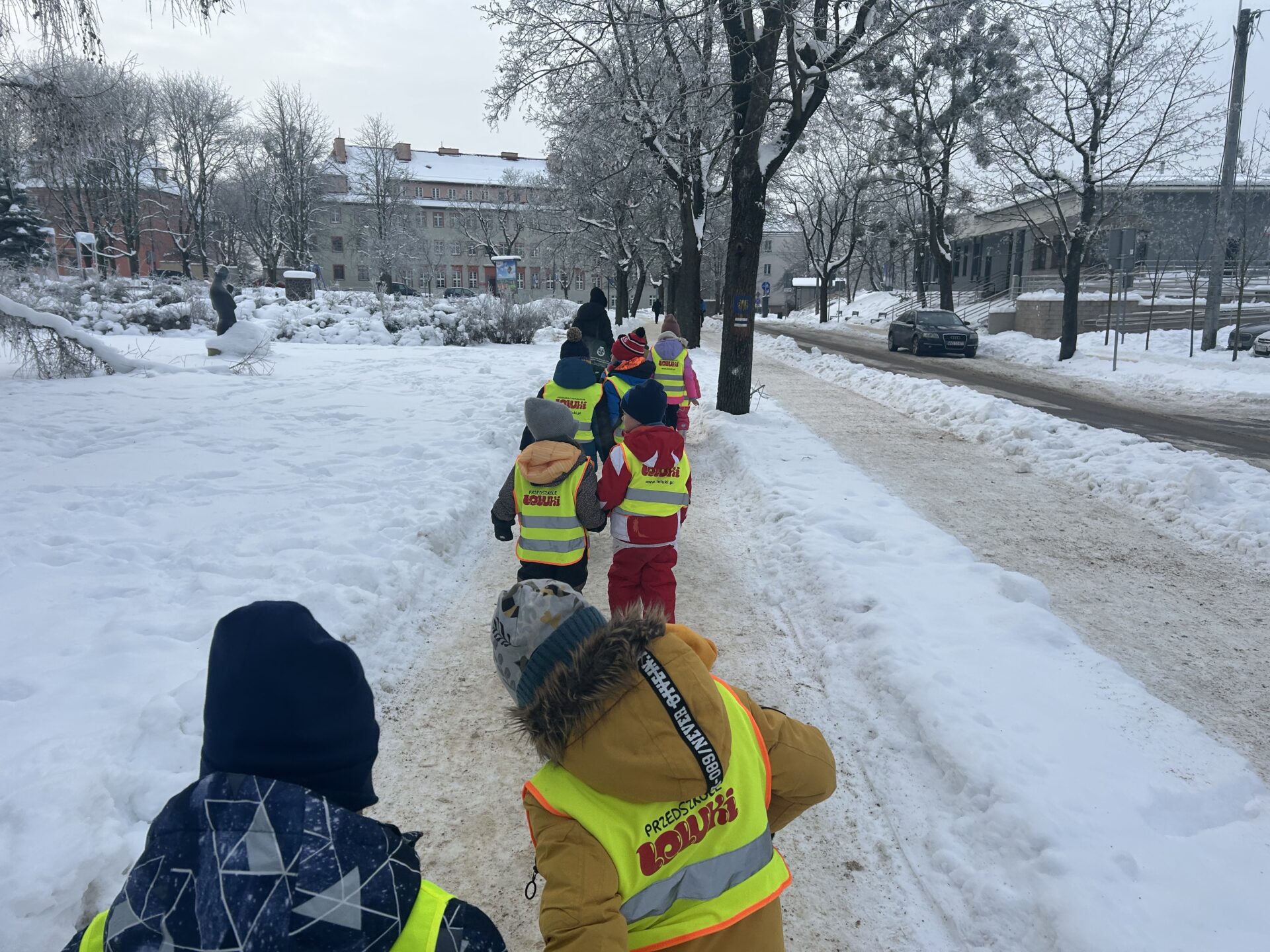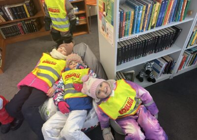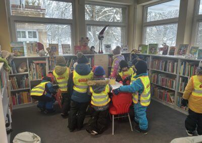Wizyta w bibliotece była doskonałą okazją do utrwalania zasad korzystania z książek, rozwijania zainteresowań czytelniczych oraz kształtowania nawyku dbania o wspólne dobro. Spacer w zimowej scenerii sprawił wszystkim wiele radości, a nowe książki z pewnością umilą nam kolejne dni w przedszkolu.