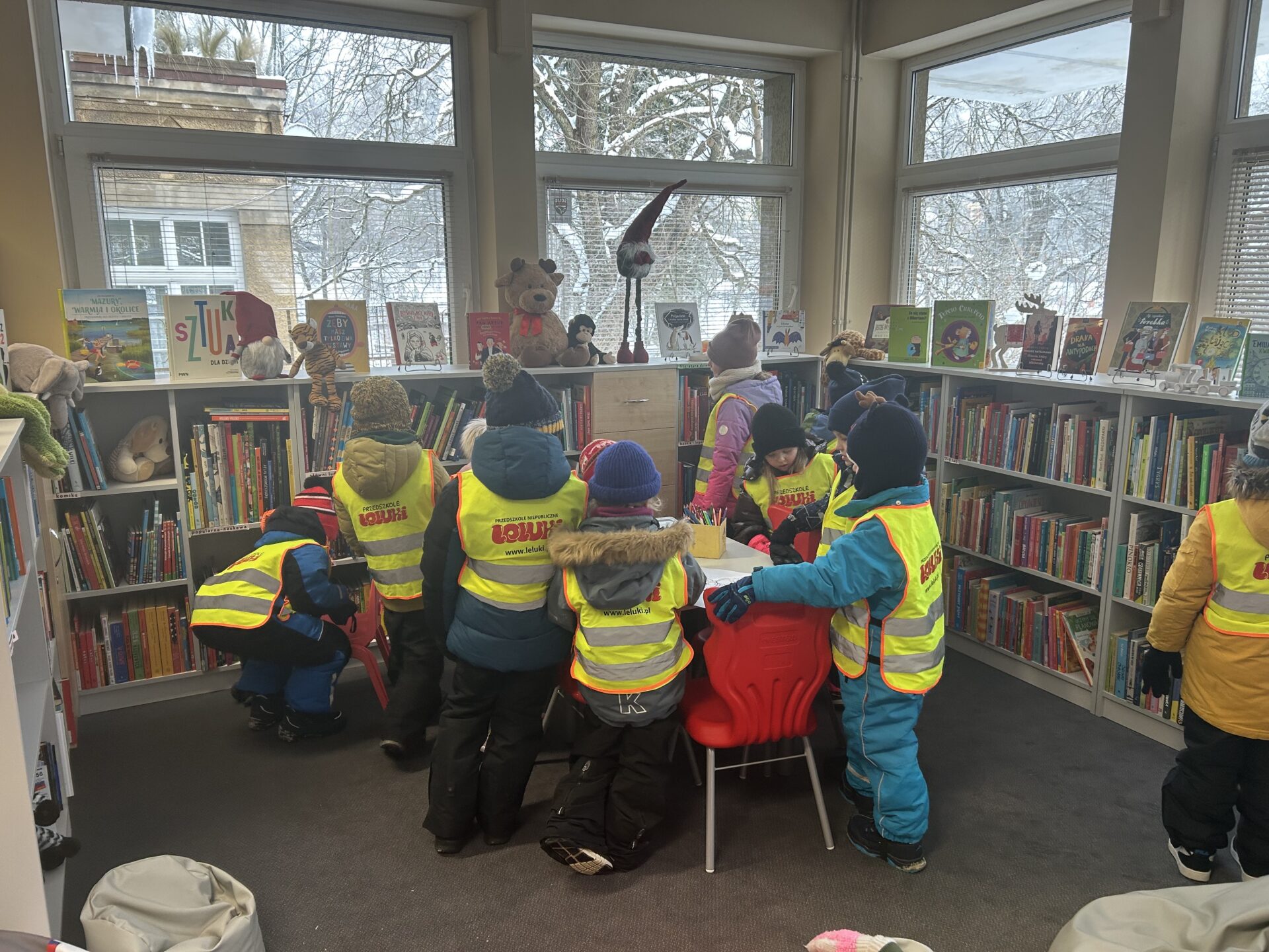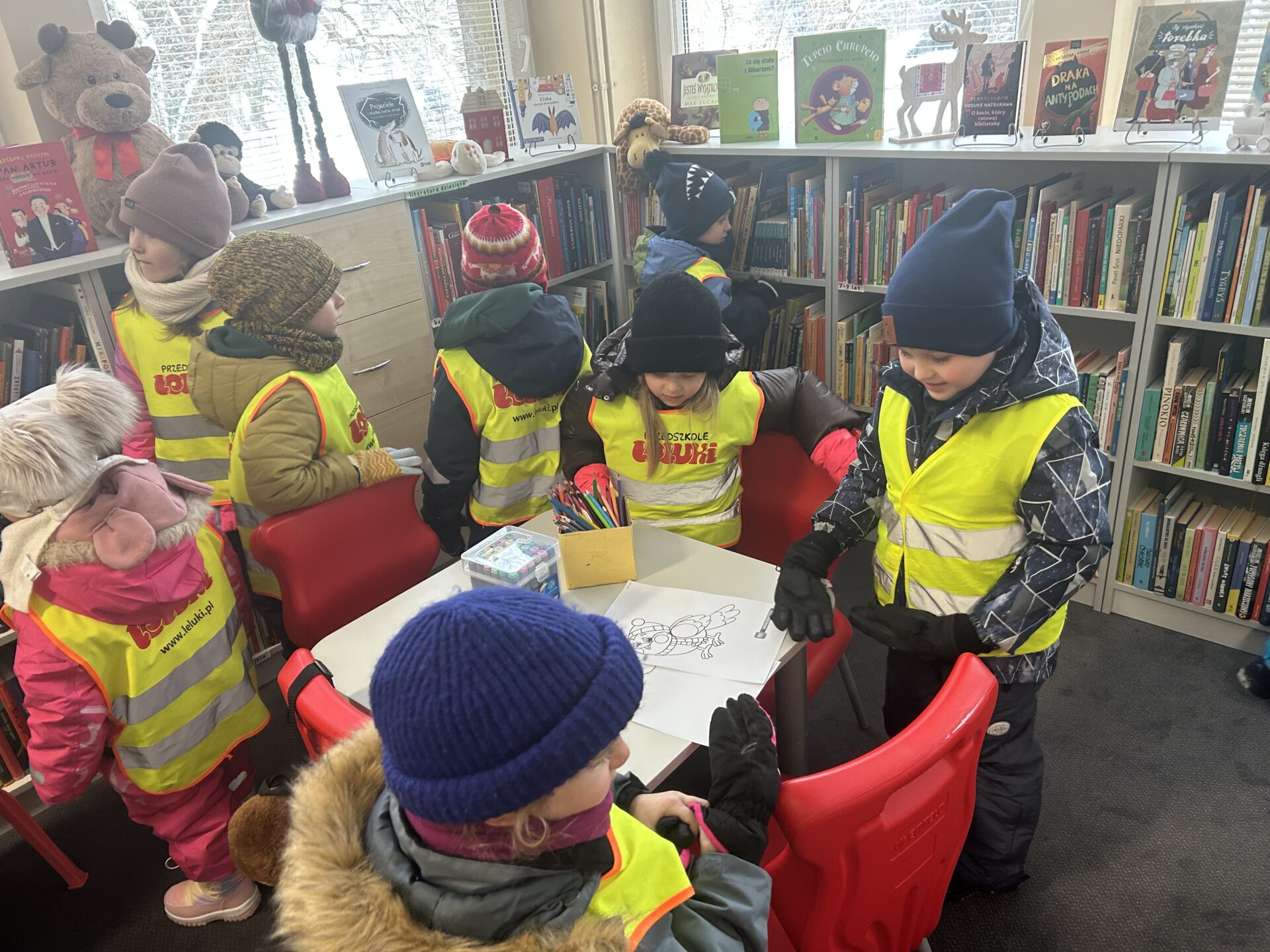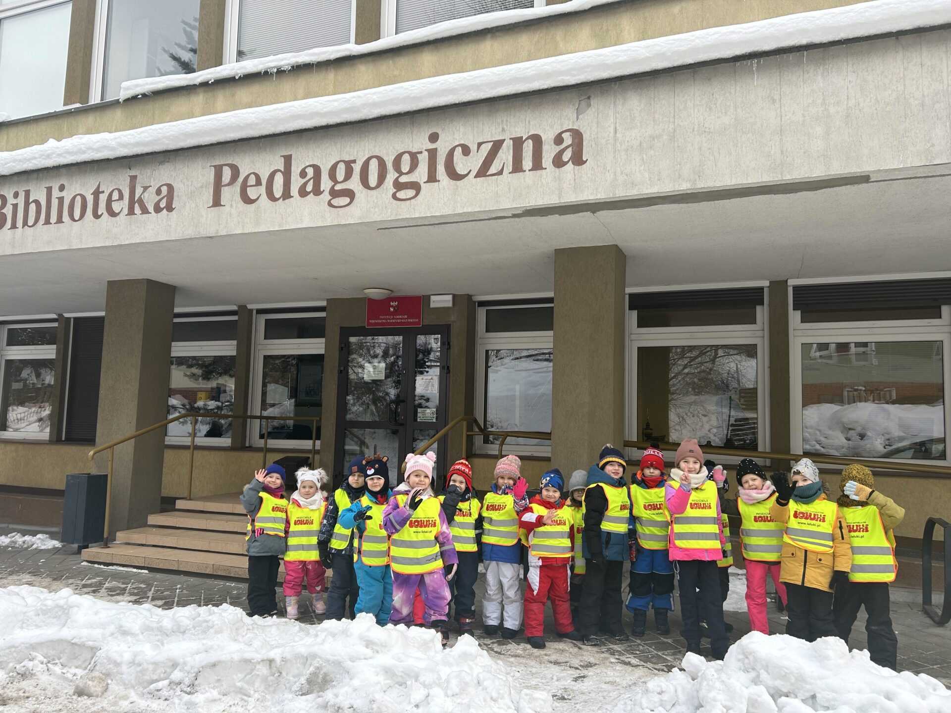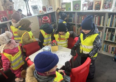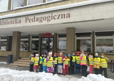 Dziś wybraliśmy się na zimowy spacer, podczas którego odwiedziliśmy Bibliotekę Pedagogiczną. Dzieci miały okazję oddać wcześniej wypożyczone książki oraz zapoznać się z nowymi pozycjami dostępnymi na półkach.